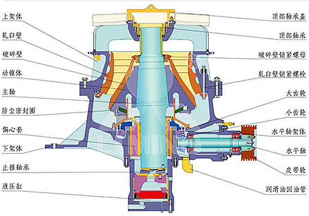 HST單缸液壓圓錐破碎機(jī)主要由上架體、中架體(中碎型)、下架體、動錐部、偏心套部、傳動部、液壓缸部等部件組成。
